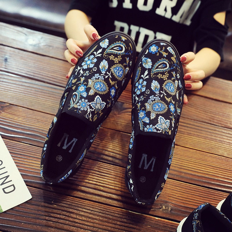 Men's Casual Floral Canvas Slip-On Shoes